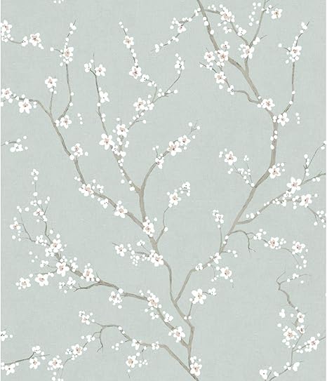 Amazon Com Roommates Blue Cherry Blossom Peel And Stick Wallpaper