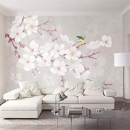 Wall Mural 3d Cherry Blossom Simple Flower Bird Gray Custom