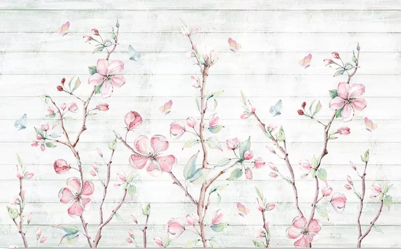Watercolor Floral Wallpaper Cherry Blossom Wall Murals Flower Wall